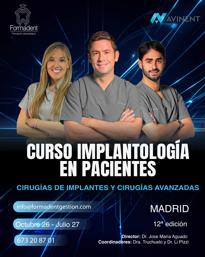 De octubre de 2025 a julio de 2026 curso de implantología en Madridcon prácticas clínicas en pacientes.